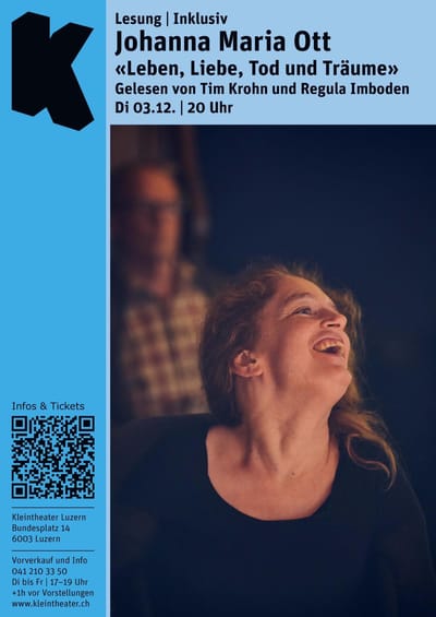 Wir freuen uns sehr, Sie zur Lesung von Johanna Maria Ott am 3. Dezember 2025 im Kleintheater Luzern...